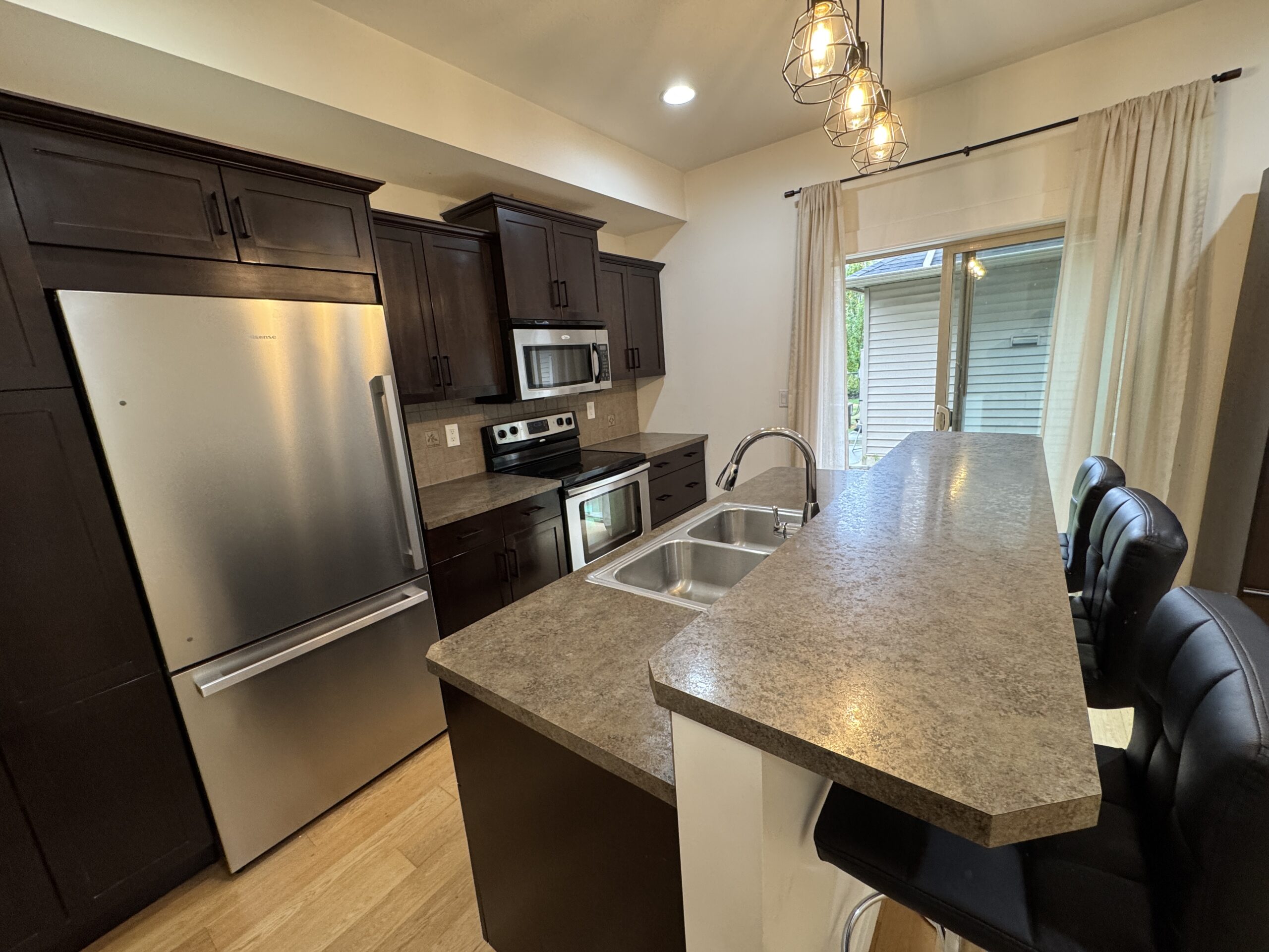 This fabulous, family friendly townhome offers a newly adjusted price to fit your budget while not compromising your expectations for quality! This bright and spacious main floor designed for entertaining, features a great kitchen that offers everything you need complete with ample cabinetry, stainless steel appliances, and a large island/breakfast bar.